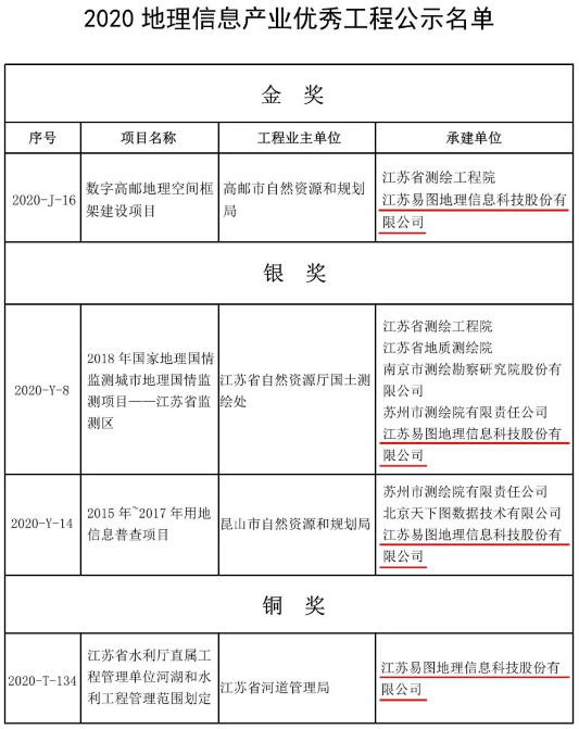 喜报!多项目荣获“2020中国地理信息产业优秀工程奖”