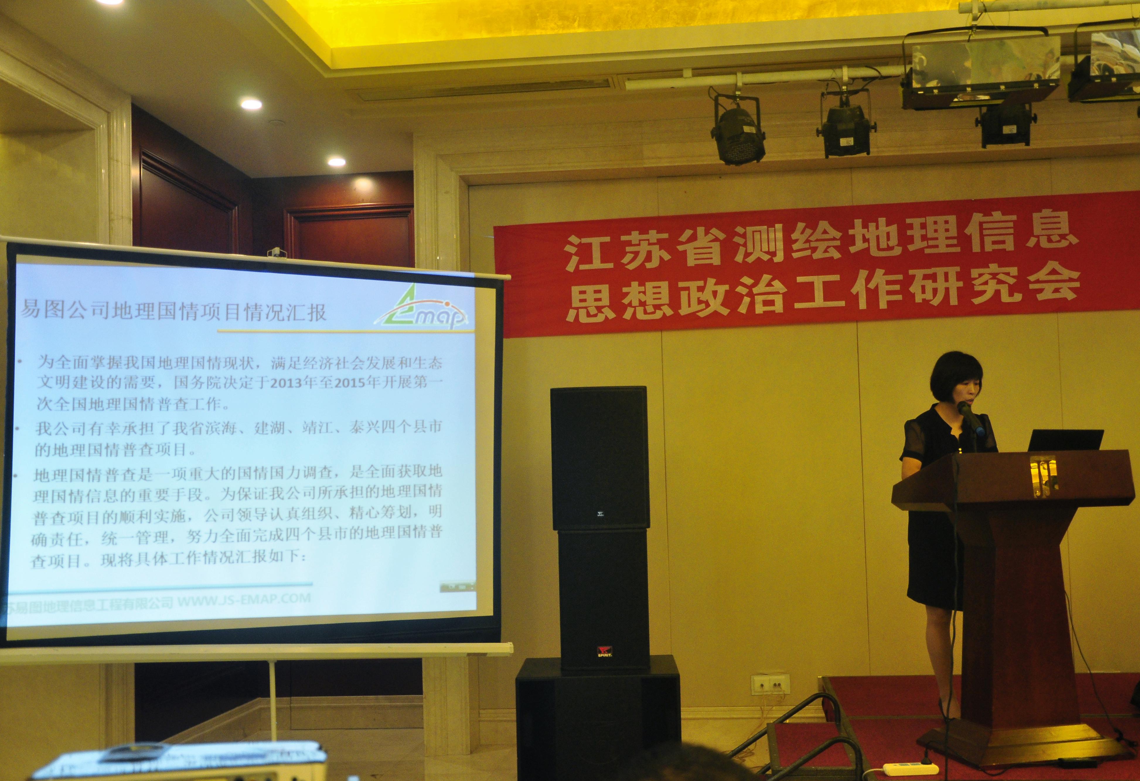 8月14日上午,江苏省测绘地理信息思想政治工作研究会于镇江召开,公司党支部书记卞忠东同志应邀参加会议并就地理国情项目做了汇报演讲。在研究会中,有关专家认真听取了工作汇报,观看了项目进程的演示,就相关问题进行了深入的探讨,最后给予一致认可。专家组成员表示,易图所承建的四个县市的项目实施规范、技术设计书内容详尽、办事效率高,满足了国家国情普查的要求、经济社会发展和生态文明建设的需要,为国家提供了最精准的地方地理信息数据。