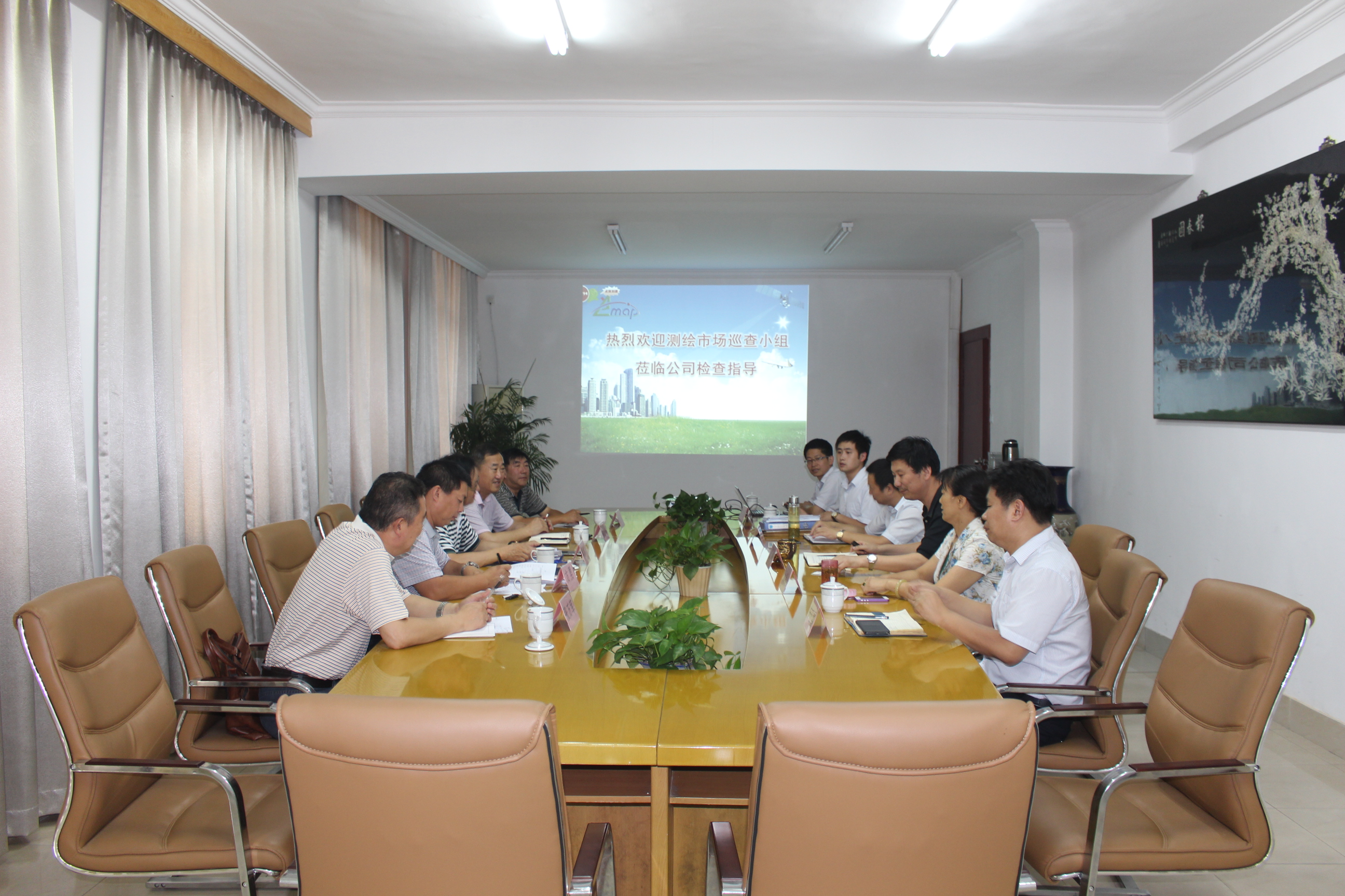 2015年8月26日,由江苏省地理信息测绘局领导组成的测绘市场巡查小组莅临我公司开展市场巡查工作。本次巡查工作主要采取听汇报、座谈会、现场工作检查等方式进行,公司董事长熊焰、总经理陈正富、副总经理袁志和等相关负责人出席了本次会议。