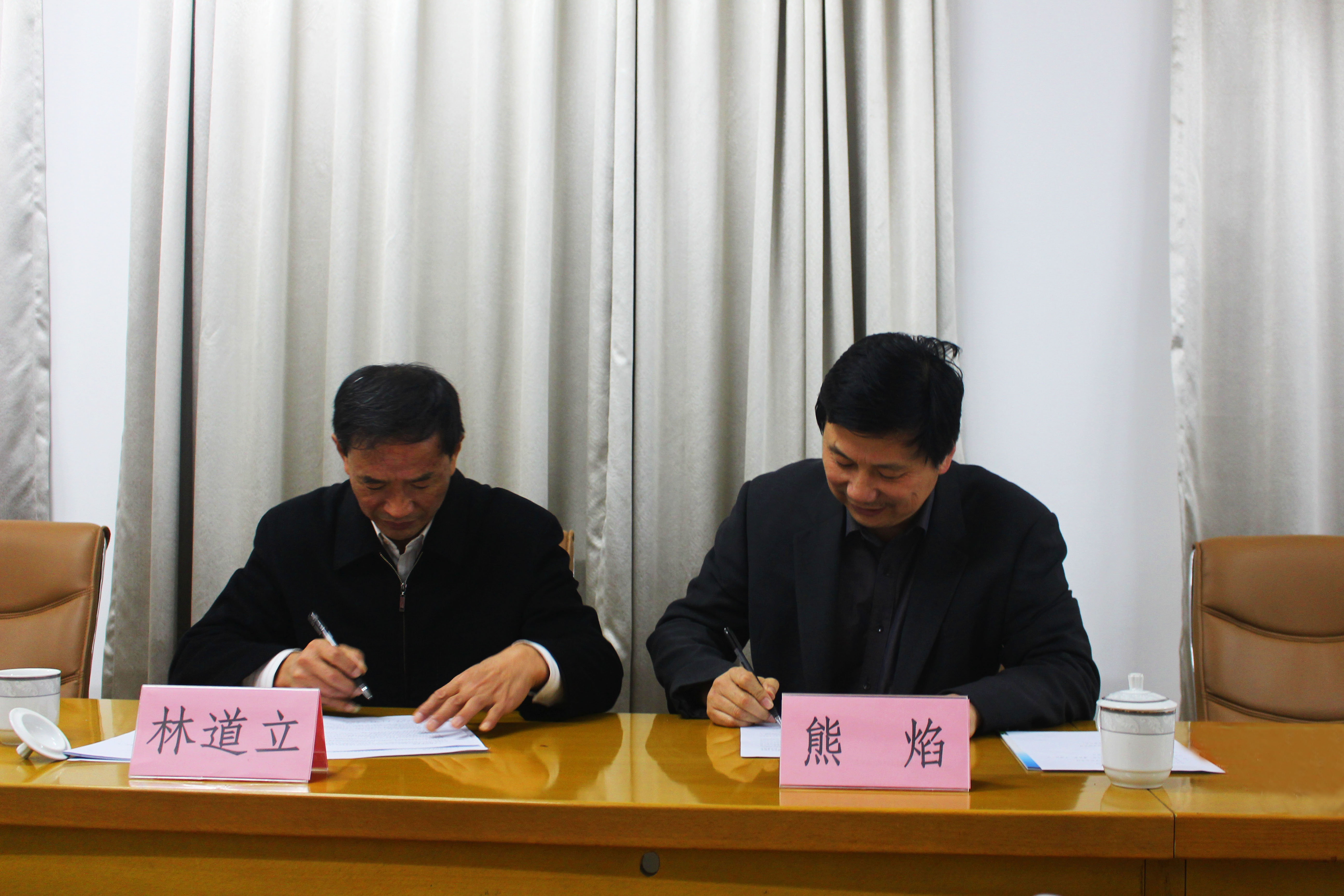 会后,林校长与熊焰董事长签订了校企合作协议书,吴春笃校长与熊焰董事长举行了校外实习基地揭牌仪式,并合影留念。