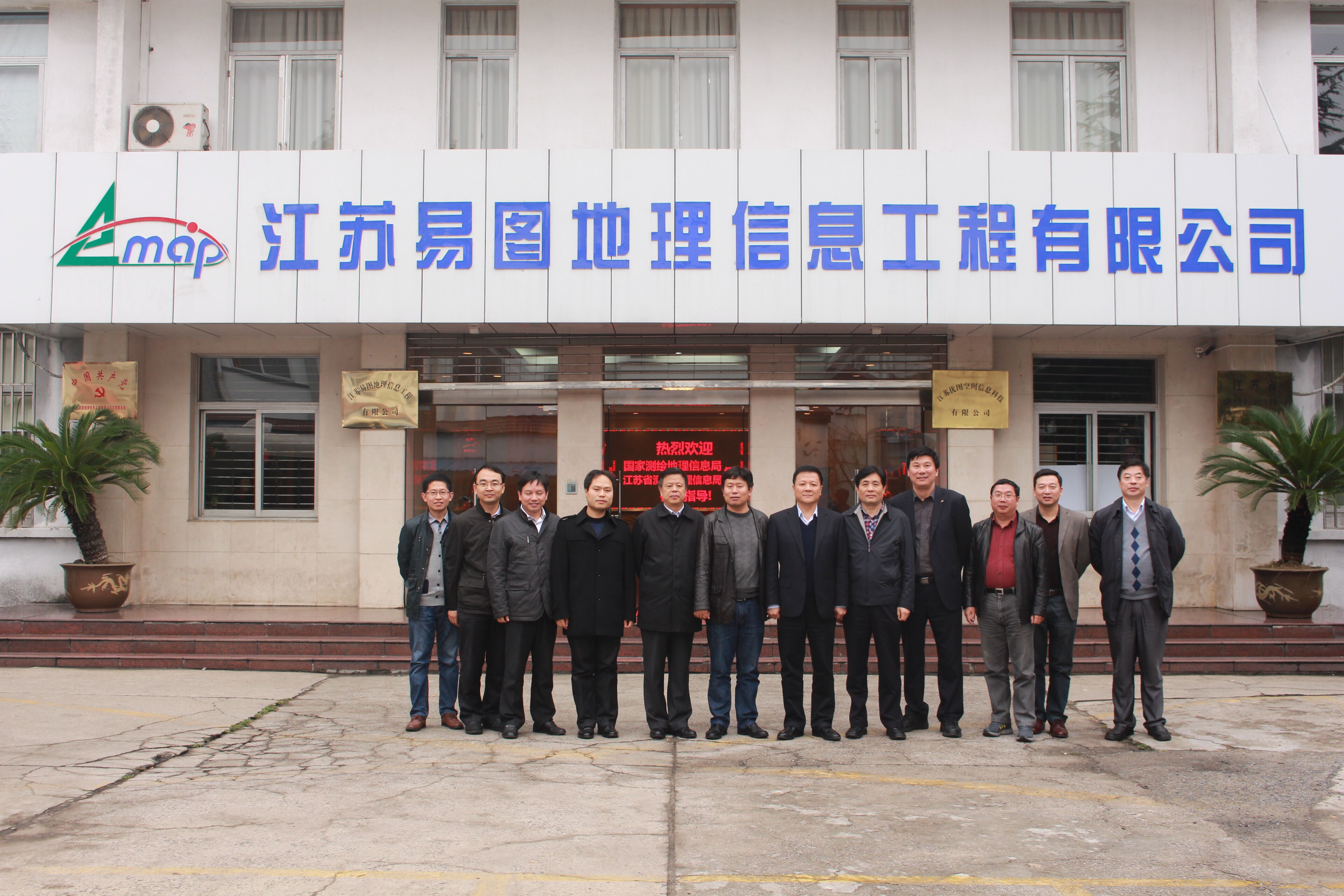 11月13日下午,国家测绘地理信息局副局长宋超智一行在江苏省测绘地理信息局副局长王祥的陪同下,对江苏易图地理信息工程有限公司进行调研指导。